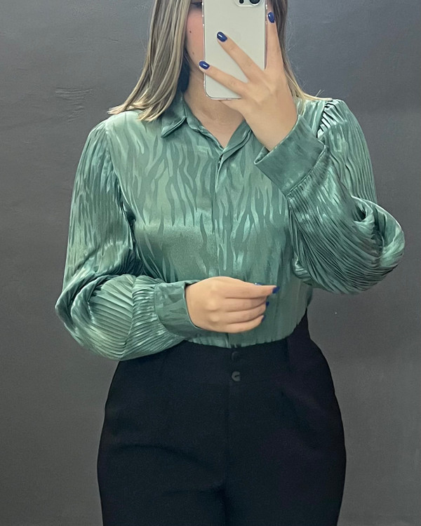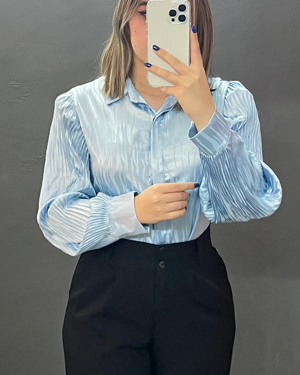 شومیز مجلسی ساتن آستین پلیسه کد ۱۹۴