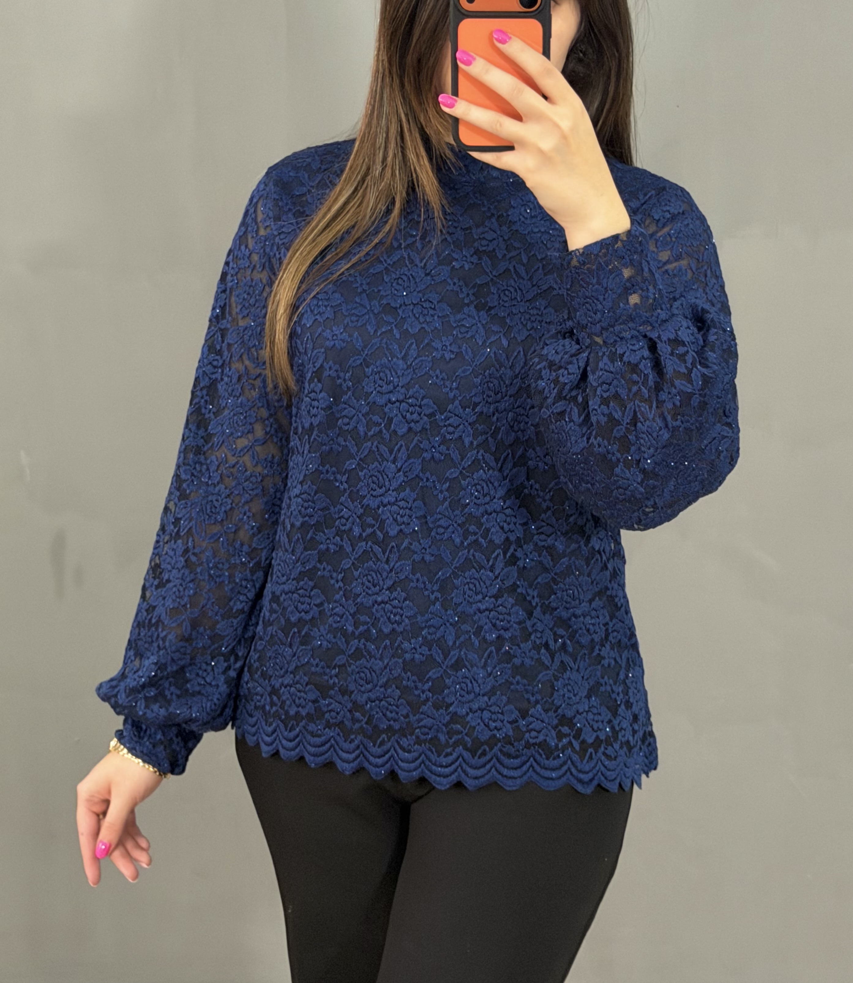 شومیز دانتل گلرخ کد ۲۸۱۶ رنگ سرمه ای